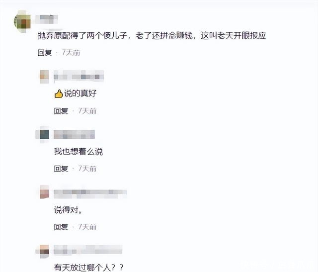 虽然他的经历让人惋惜,但网友不买账,毕竟与他抛弃妻子的行为来说,这些很难不怀疑是他当年抛妻弃子的报应。